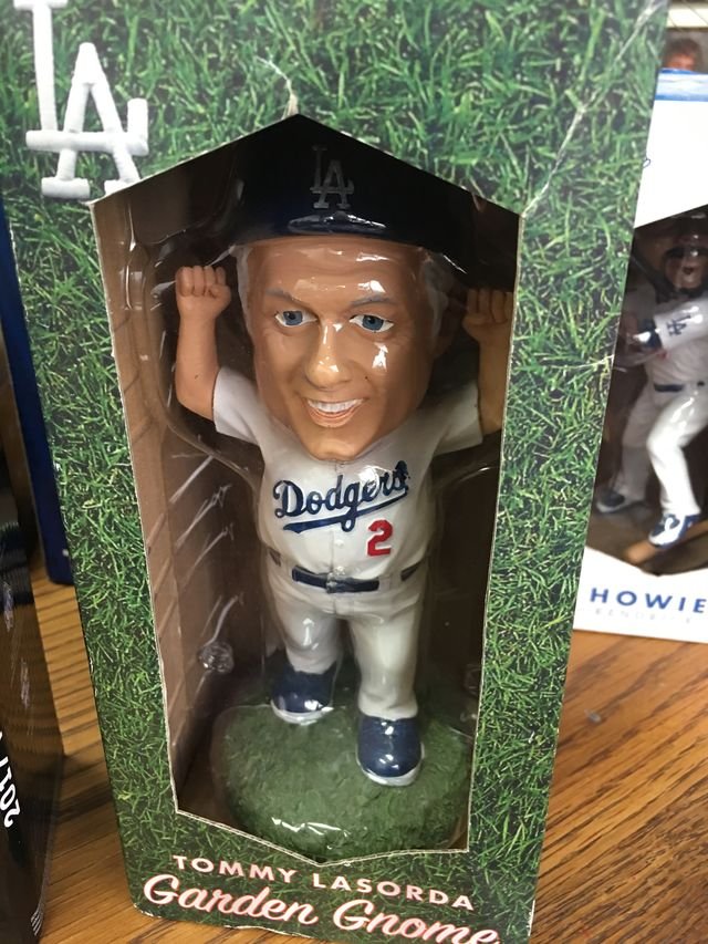 Why do I go to games because there’s a bobblehead giveaway? When did I get hooked? Do I need a 12-step program to overcome my addiction? Will the yearning ever wane? I mean, after all, what the heck can I do with these things? They are all over my office. I even have an occasional nightmare when they all start bobbing at the same time, moving toward me. Their smiling faces remain, their large eyes beaming. Then the bats start swinging at my head, the arms start flailing at me, and I wind up like Telly Savalas in that infamous Twilight Zone episode about the talking doll, lying at the bottom of the stairs, never to bobble again…. The Tommy Lasorda Garden Gnome cackling above me.